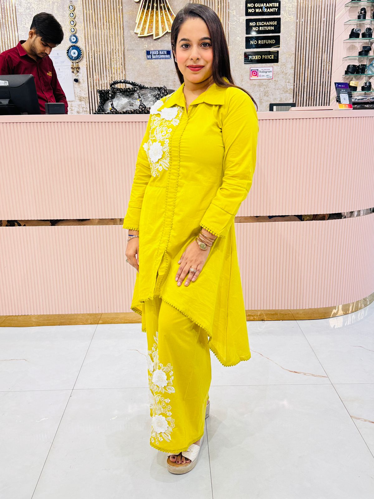 Vibrant cotton co-ord set featuring statement 3D floral appliqué embroidery