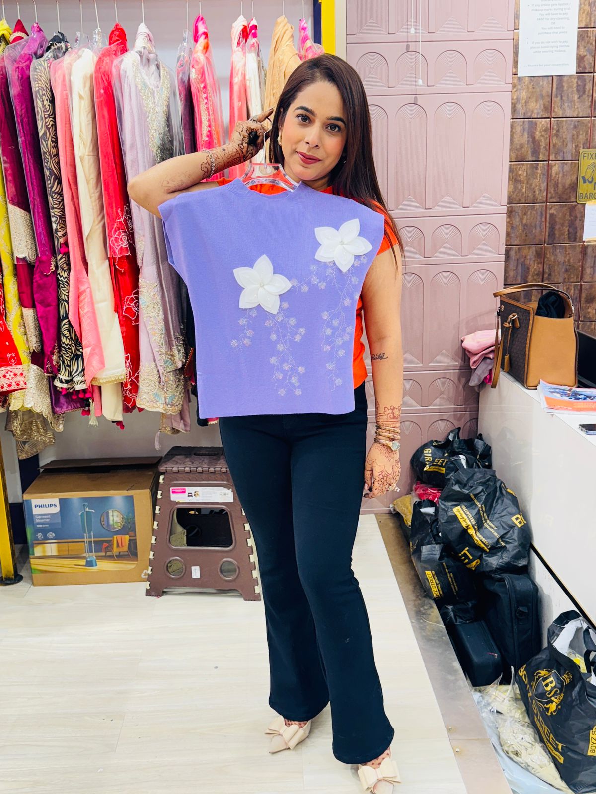 "Fukari"- 3D White Floral Knitted Top (Available in 2 Variants)