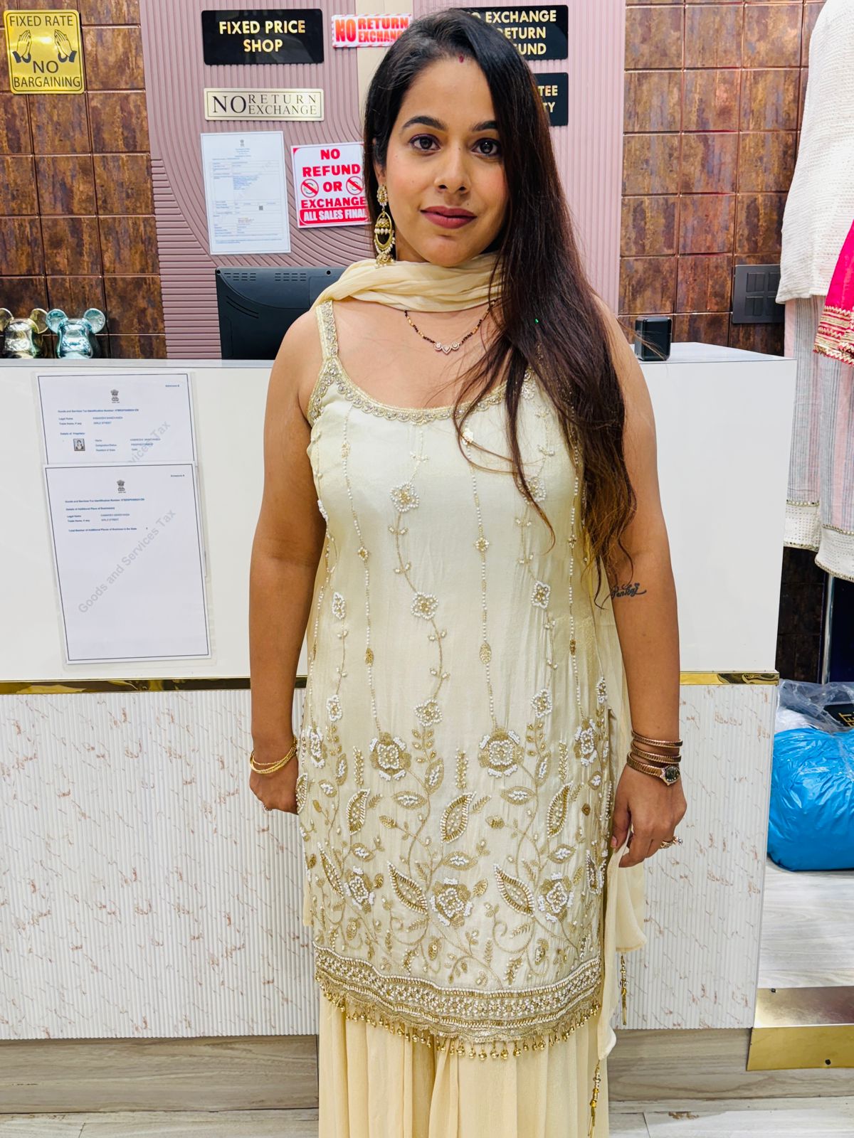 Gold Embroidered Sharara Suit with Pearl Detailing
