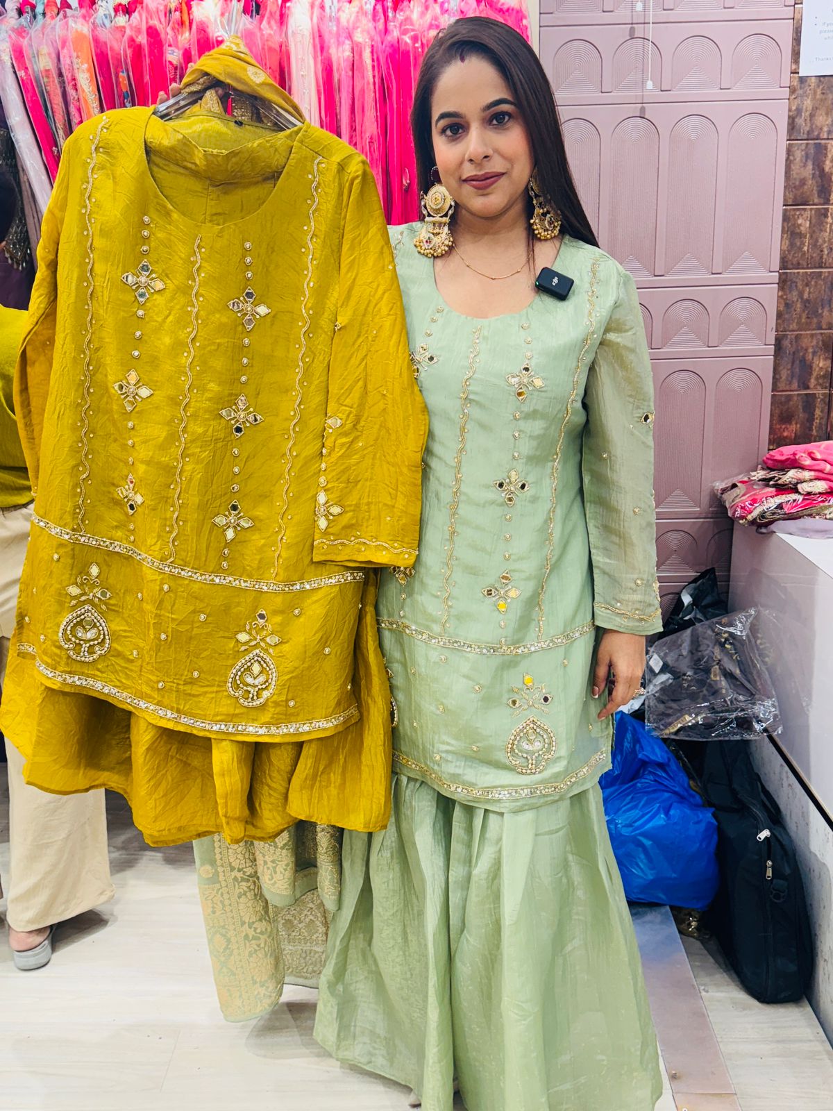 "Gulnaar"- 3 Piece Suit set with Floral Mirror Work (Available in 3 Variants)