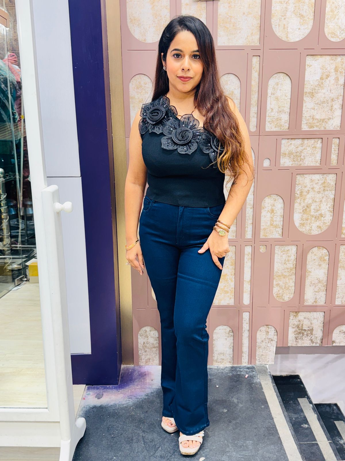 One-Shoulder Free Size Floral Appliqué Top (Black Edition)