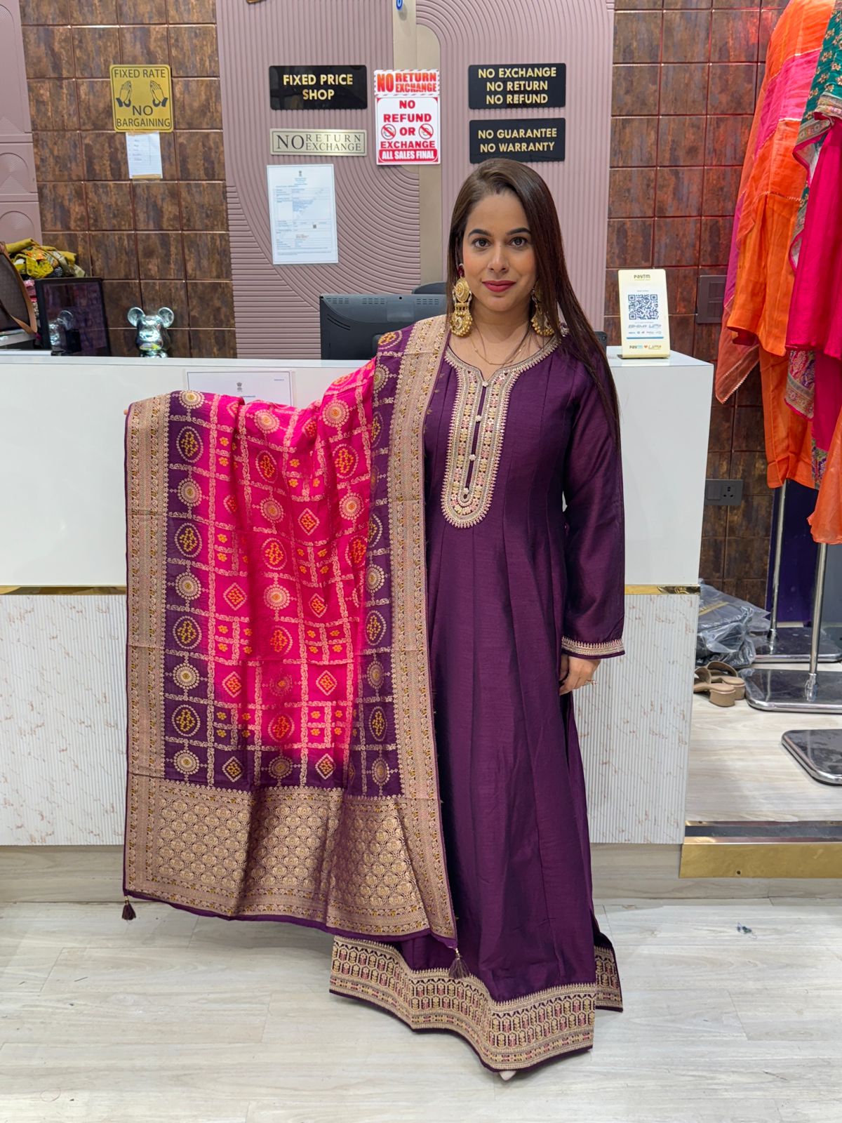 "Roohani"- Anarkali Suit Set with Dual Shade Heavy Embroidered Dupatta