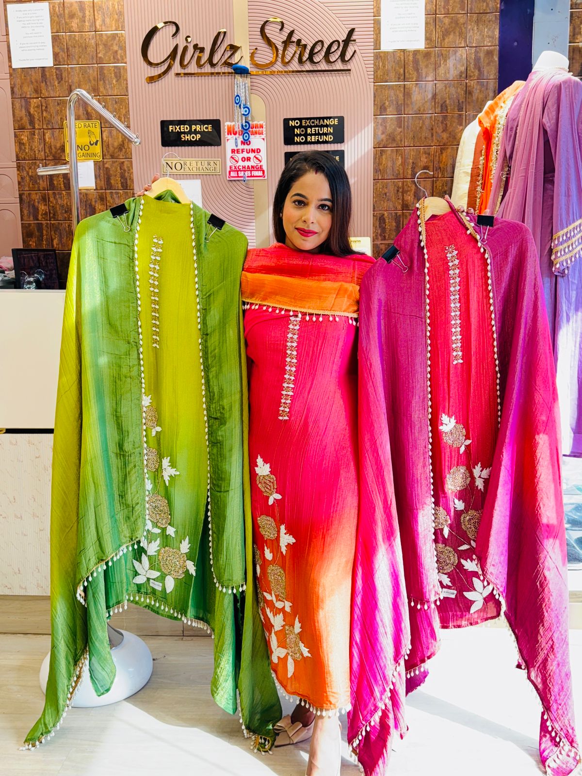 Unstitched Crush Tissue Suit with Embroidery & Tassel Detailing – Dual Tone Shades